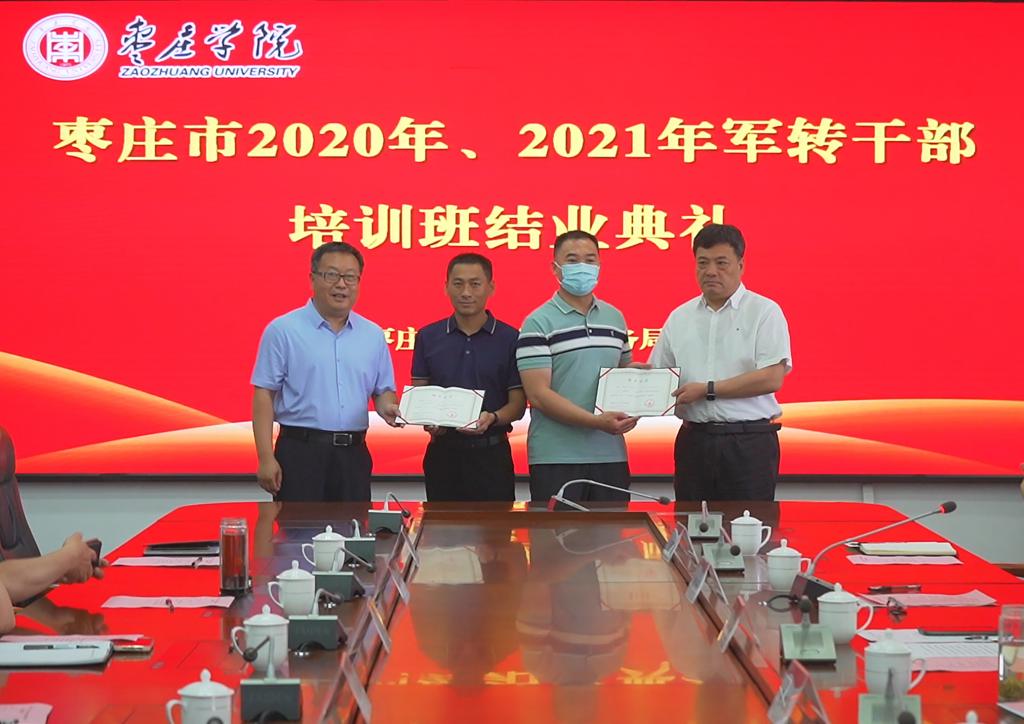 本次培训班受枣庄市退役军人事务局委托,由创新创业学院、继续教育学院承办。53名军队转业干部圆满完成培训任务,丰雷和张成磊为学员代表颁发结业证书,张宗海宣读培训班“优秀学员”表彰决定,赵浩宇等8人被评为“优秀学员”。