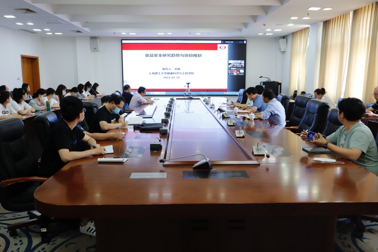 刘箐教授以“食品安全研究趋势与项目规划”为题作报告。报告从食品安全研究的现状与展望、食品安全检测前沿技术和食品中病原微生物快速检测等方面展开,分析了食品安全检测发展面临的挑战和未来发展的主要任务,展示了生物信息学分析、CRISPR技术、拉曼光谱、微流控芯片等技术在食品安全检测领域的应用,为食品安全检测及产业发展提出了可行的建议和方案。刘教授指出,科学研究要瞄准国际前沿和国家战略,以市场需求为导向,紧贴行业技术需求,找准科研切入点,在服务国家战略发展中实现自己的梦想。在交流互动环节,刘教授在线上与我院师生进行了深入交流,就师生提出的问题一一为大家答疑解惑。