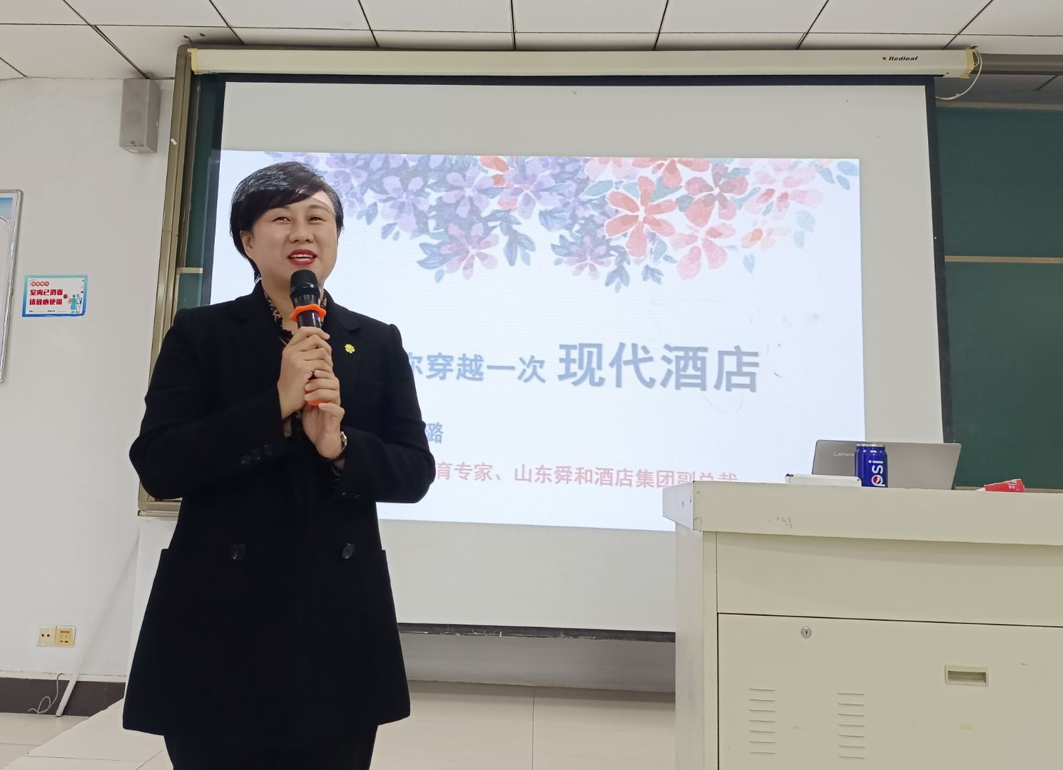 11月5日下午,旅游与资源环境学院邀请山东省旅游行业教育专家、舜和酒店集团副总裁白璐女士在理工楼2505教室作题为《走,带你穿越一次现代酒店》的报告。2020、2021级旅游管理和酒店管理专业学生聆听了此次报告。