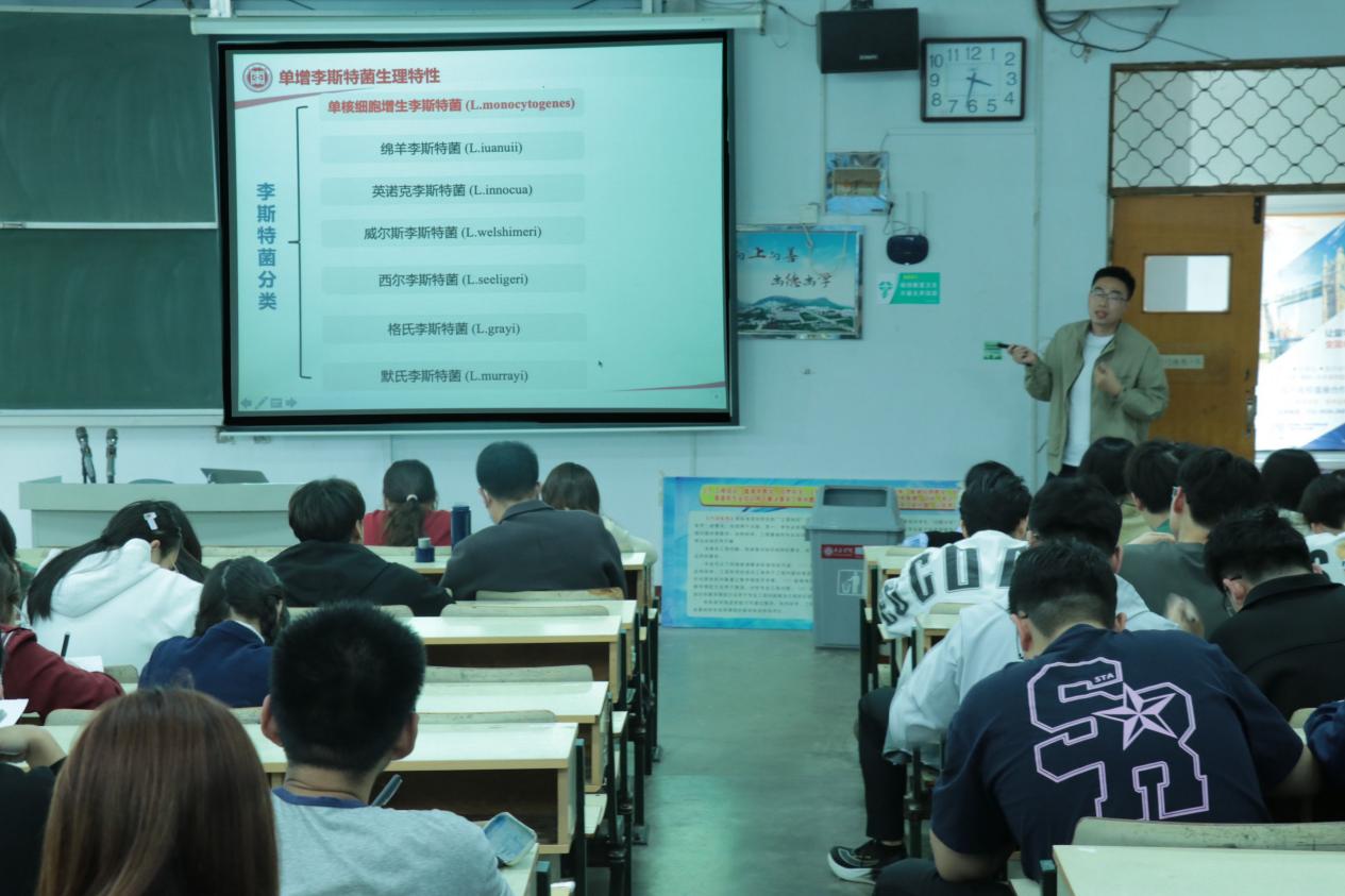 为进一步增进学术交流,拓展学院师生的学术视野。4月10日下午,食品科学与制药工程学院在文科楼117教室举办了题为“单增李斯特菌生物被膜形成与防控进展”的学术报告会。本次报告会由郭亮博士主讲,“石榴+植物资源团队”全体教师、2022级食品质量与安全专业全体同学参加。